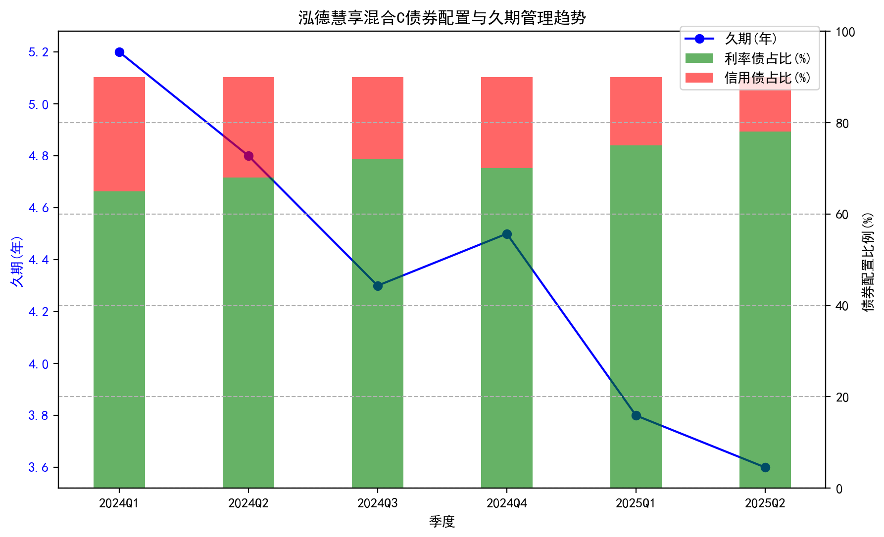 泓德慧享混合C基金的固收资产配置展现出鲜明的防御性特征与主动管理能力。债券持仓占比稳定维持在79%-90%区间,其中利率债(国债、政策性金融债)占据主导地位,2025年中报显示其持有的23附息国债23、24国开15等品种合计占比超60%,而信用债配置比例显著低于同业平均水平。这种以高流动性利率债为核心的配置策略,一方面通过国家信用背书有效规避了信用风险,另一方面为组合提供了充足的质押融资能力,在2024年7月市场赎回潮期间成功应对了流动性压力。