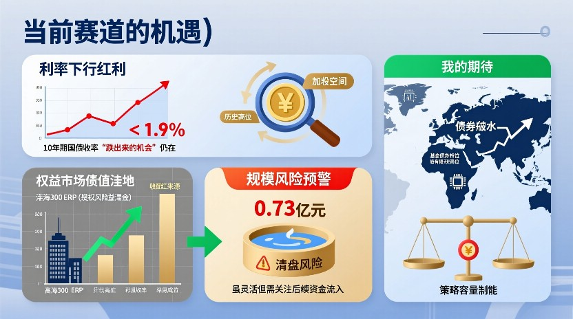 - 规模瓶颈:当前规模仅0.73亿元,虽灵活却有清盘风险,需关注后续资金流入情况。
