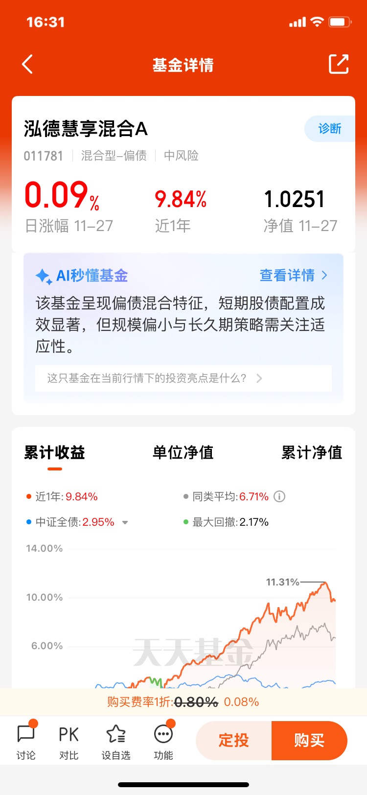 我坚定看好混合偏债基金,理由很实在。首先,它符合普通人的投资心态。职场打工人资金有限,风险承受力中等,我们追求的不是一夜暴富,而是长期稳健的增值。混合偏债基金的年化收益率通常在5%-10%之间,如泓德慧享近一年收益达11.86%,远超业绩基准的4.09%。这种收益水平,既能跑赢通胀,又不会让人夜不能寐。