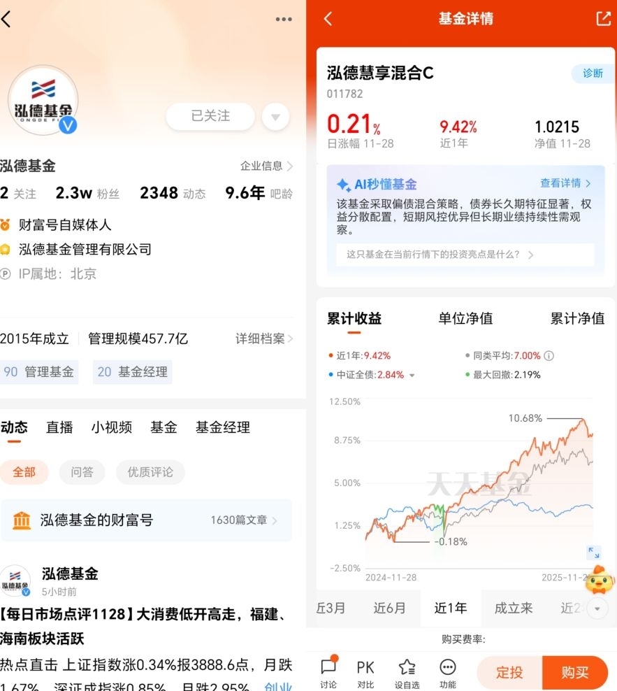 $泓德慧享混合C$最近市场波动像过山车,我对固收产品的第一要求就是“稳”——而泓