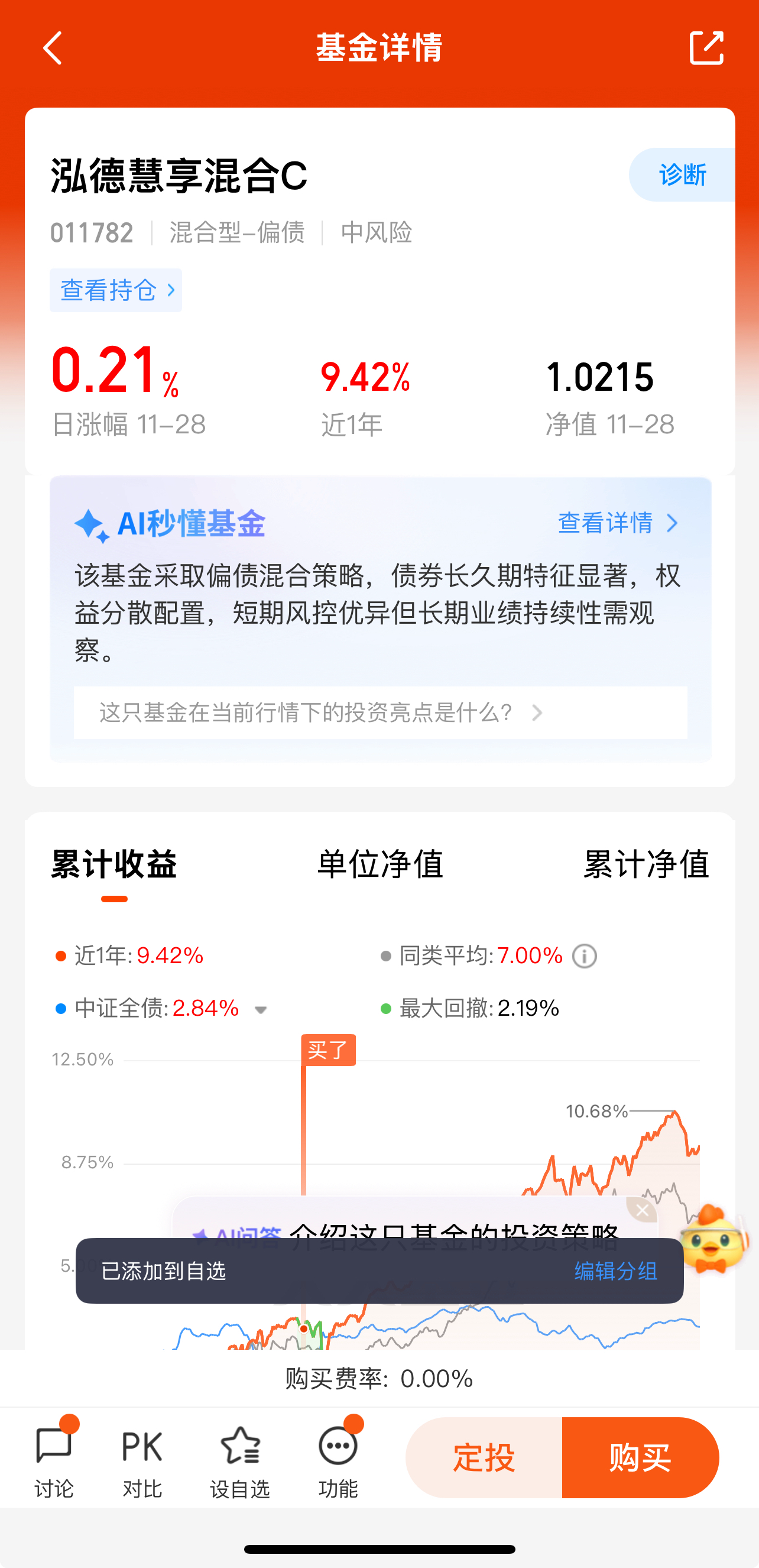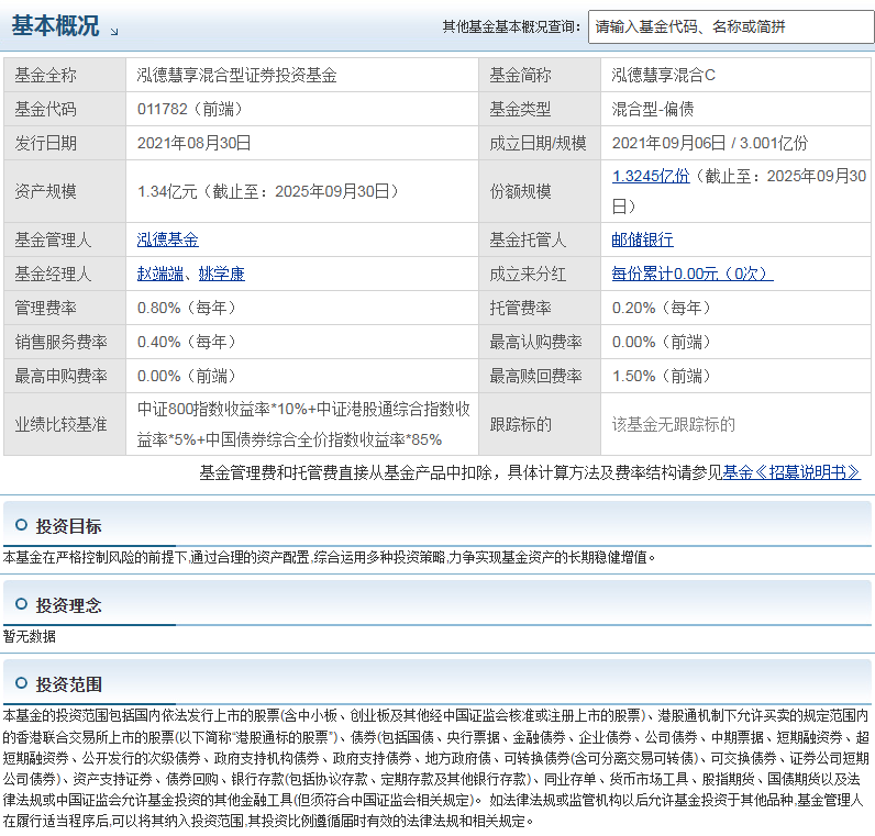 总体来说,如果你是风险偏好中等、追求长期稳健增值的投资者,泓德慧享混合C(011782)是个可以考虑的选择。不过投资都有风险,还是要结合自身情况进行决策。