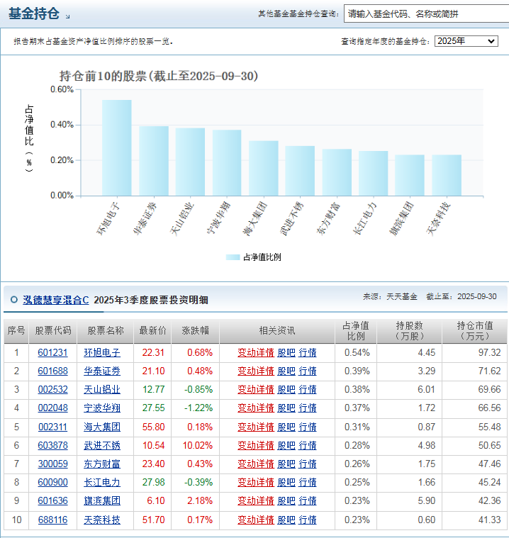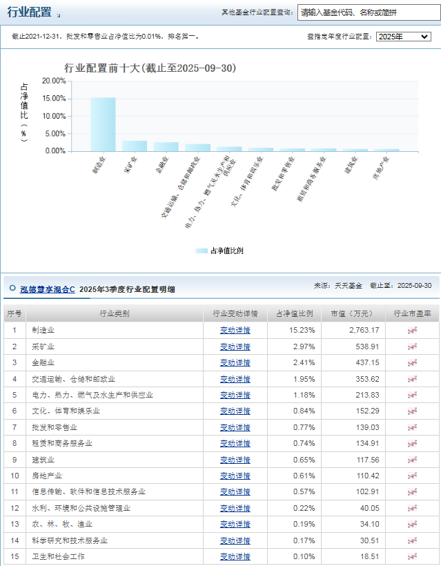 $泓德慧享混合C$ 基金持仓分散且风格稳定,前十大重仓股行业分散,持股集中度仅1.18%,投资者能清晰看到资金的投向,避免了黑箱操作的担忧。相比动辄百亿的大型基金,小规模基金在调仓换股时更灵活,能及时把握市场机会,也更容易控制回撤。