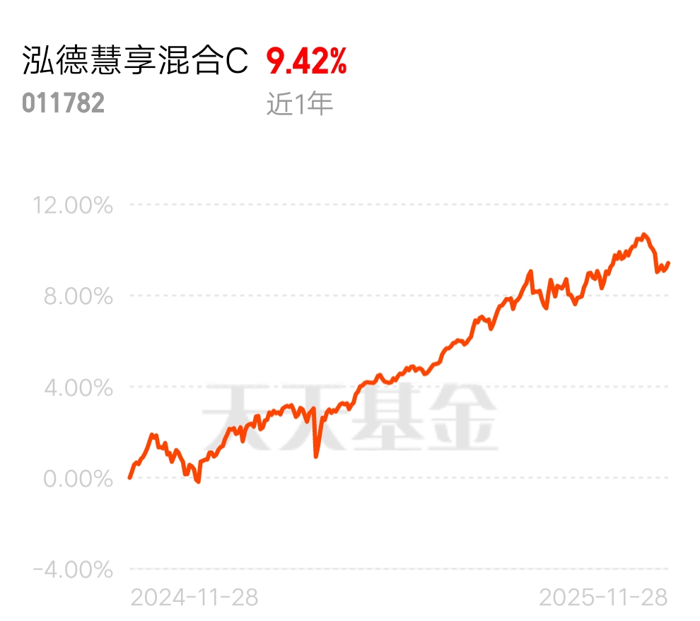 对于固收产品,我认为风险低,收益稳定,可以跑赢银行定期存款利率的产品我就满足了。$泓德慧享混合C$ 近一年收益率9.42%,远远跑赢了银行存款利率。该基金以投资信用债为主,利率债和可转债为辅,债券投资比例86.72%。股票投资比例28.60%。@泓德基金