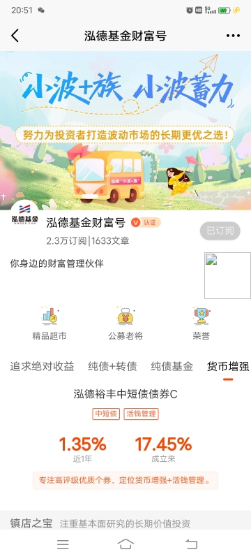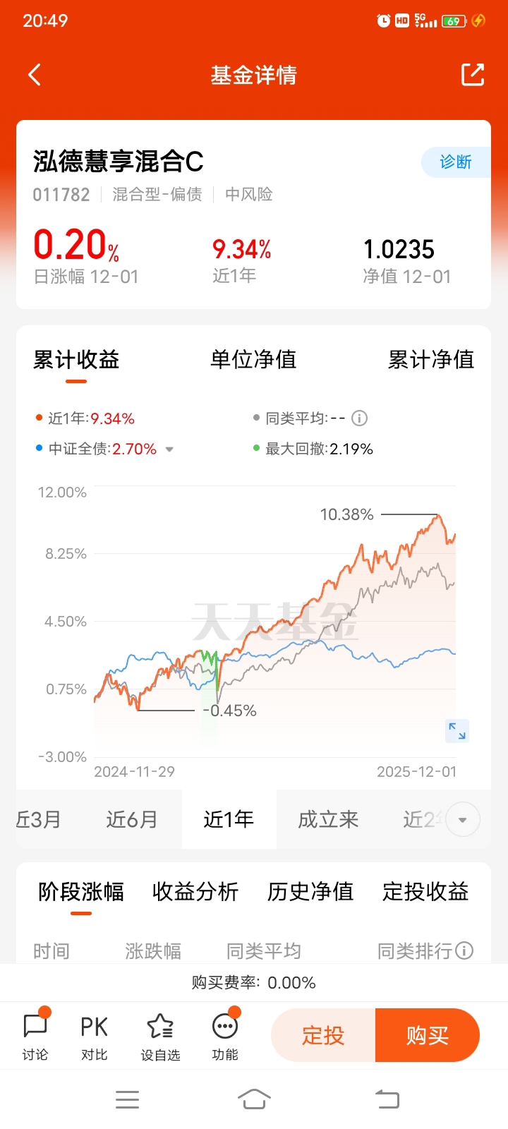 说到今年印象深的固收产品,我还真盯上了泓德慧享混合C。其实我选固收产品很直接:得稳得住又能挣点“小惊喜”。这只偏债混合基金刚好戳中我——它是“固收+”路子,大部分钱投债券打底,小部分配权益资产,既有债券的安全垫,又能蹭点股市的机会,不像纯债收益太温吞,也不像股票基金波动吓人。