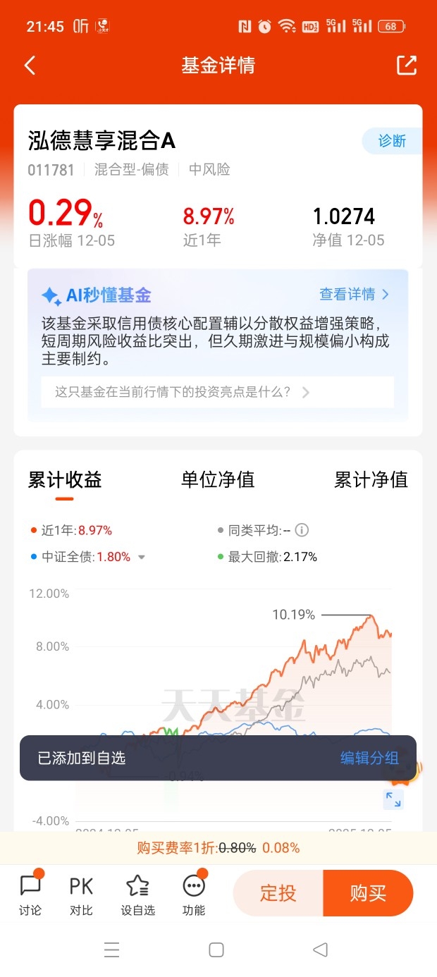 因此,对于泓德慧享混合C这类产品,我看好它正是因为它提供了一种契合当下时代的解决方案。它不追求暴涨的奇迹,而是致力于在波动市场中提供一份确定性的慰藉,帮助像我们在低利率的迷雾中找到一条相对清晰、安心的路径。相信,随着时间推移,该基金将继续用稳健的业绩证明自己的价值,为我这样的普通投资者守住财富增值的希望。