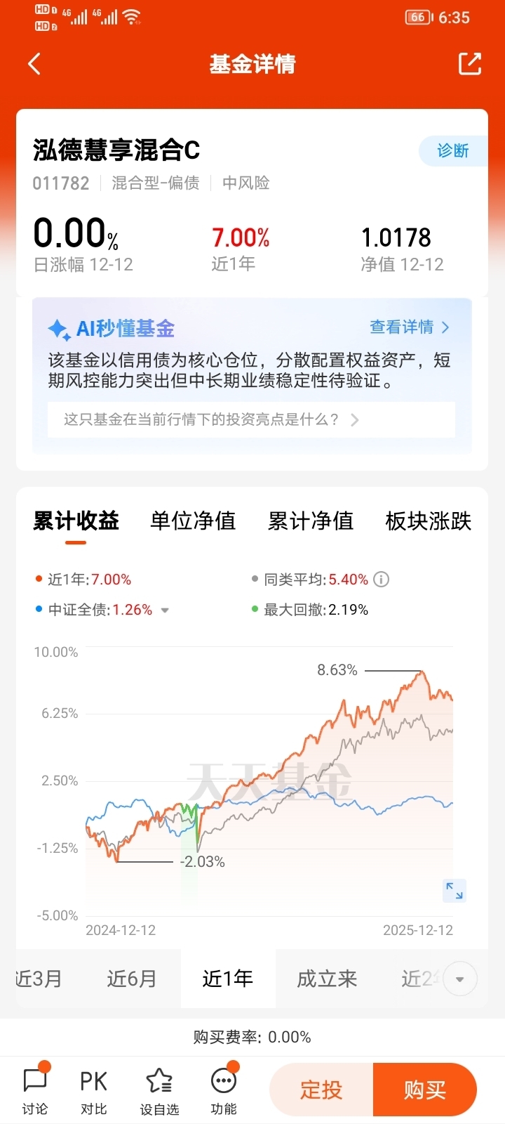 防御震荡,优选慧享。$泓德慧享混合C$是一支注重风险控制的偏债混合型基金,这样的