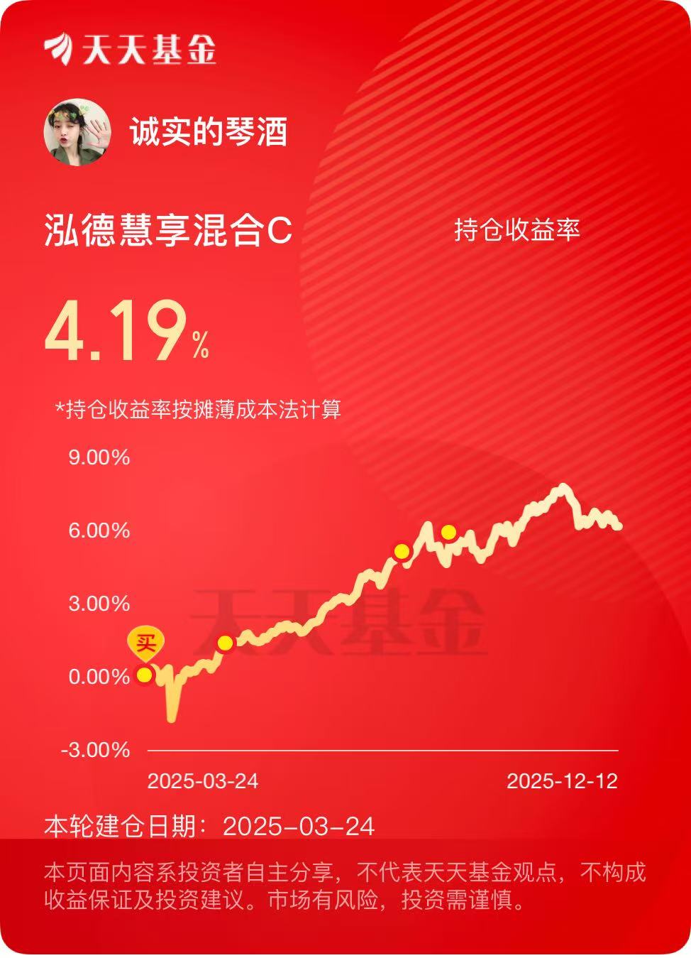 风险控制严格有效 :固收部分坚守安全边界,不信用下沉,核心持仓以 AA + 及以上高等级信用债和利率债为主,年化票息收益稳定在 3%-4% 区间,为组合收益筑起坚实安全垫。股票资产占比严格控制在 30% 以内,实际运作中常维持在 15%-20%,避免了纯债基金收益平淡的局限,又不会像权益基金那样波动剧烈。同时,还建立了三层回撤防御体系,包括个股层面设置 - 15% 自动止损线、组合层面权益部分与债券久期负相关对冲、产品层面引入 “一年持有期” 设计减少短期申赎冲击。