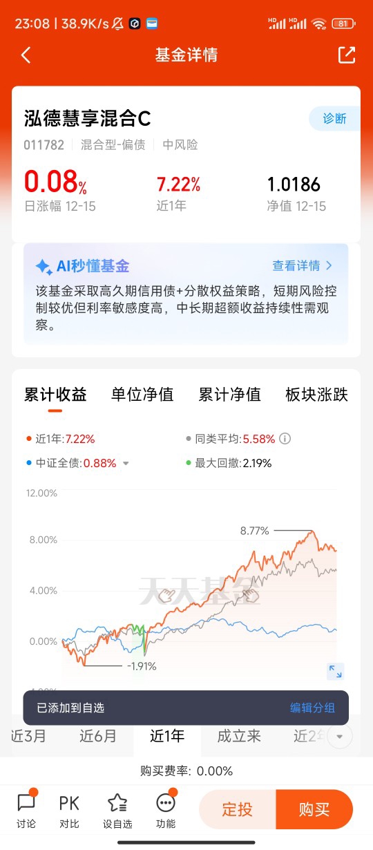 泓德慧享作为一只混合偏债基金,恰似一位量身定制的投资伙伴,完美契合了我对固收产品的诸多期待。从产品特点来看,它以债券投资作为坚实的主阵地,为基金奠定了稳健收益的基石。债券市场就像一片宁静的港湾,相对稳定的市场环境能够为投资者提供较为可观的利息收入,如同冬日里熊熊燃烧的暖炉,持续不断地散发着温暖,让我在投资的道路上感受到安心与踏实。与此同时,泓德慧享还会审时度势,适当参与股票市场投资。在严格控制风险的前提下,它如同一位勇敢的探险家,敏锐地捕捉股票市场的上涨机会,为基金收益增添一份灵动的弹性。这种股债搭配的精妙投资策略,就像一位技艺高超的调酒师精心调配的美酒,既有债券的醇厚绵长,又有股票的灵动活泼,二者相互交融,相得益彰,共同奏响了一曲稳健与进取并存的投资交响曲。