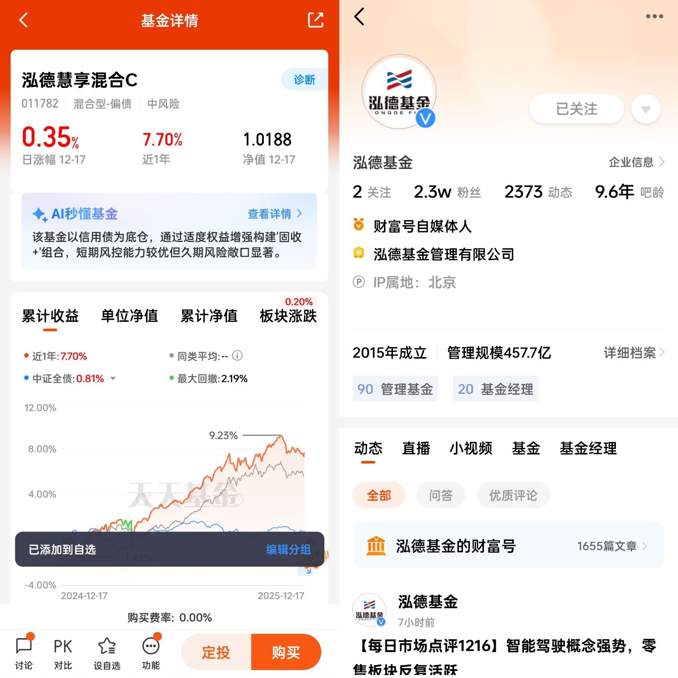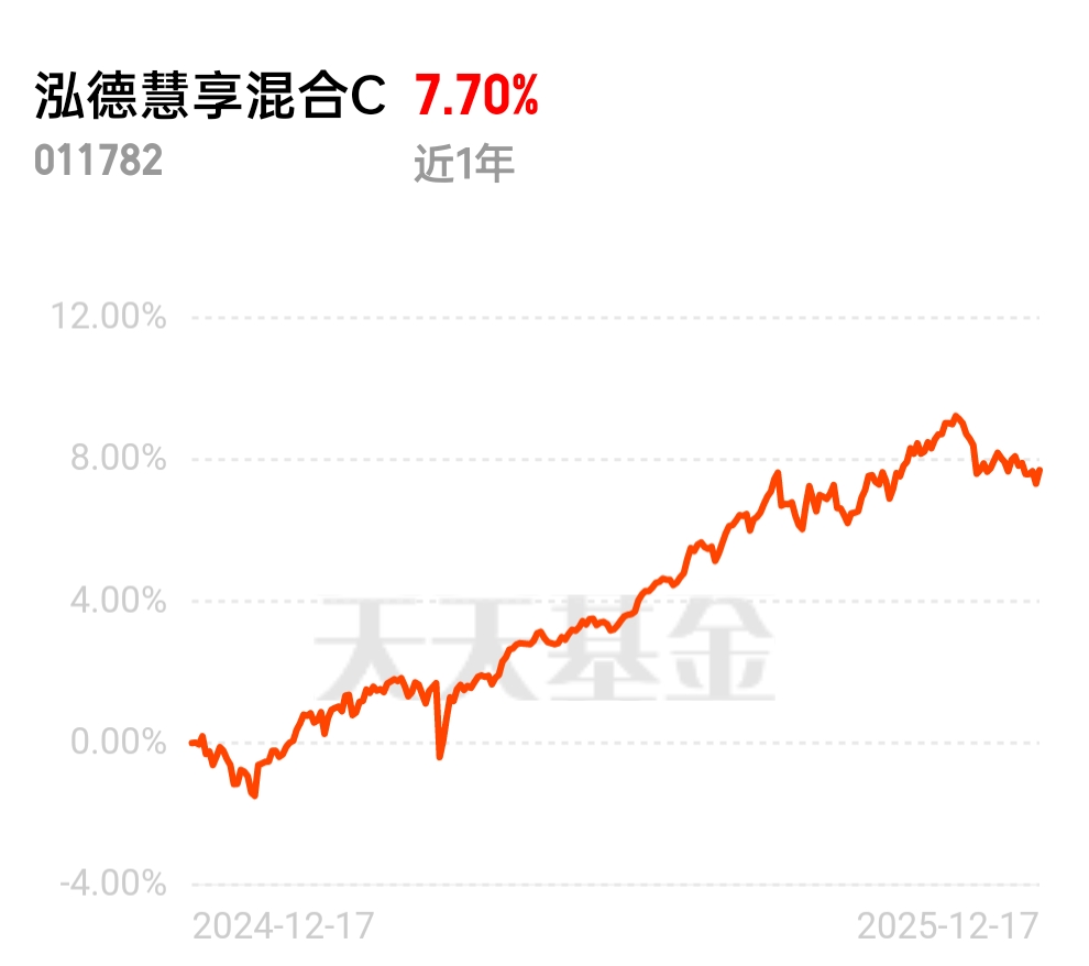 #“慧享”别样温暖# 2025年A股“慢牛”格局持续深化,市场在震荡中孕育结构性机会,投资者风险偏好更趋理性,“不求快涨但求稳赚”成为主流诉求。在此背景下,偏债混合基金凭借“稳健+弹性”的双重优势持续走红,发行规模屡创新高,多只产品首募规模突破10亿元,FOF等机构资金也纷纷将其作为核心配置标的。$泓德慧享混合C$ (011782)便是这一赛道中的佼佼者,以“固收打底求稳、红利+小盘成长增强求赚”的清晰策略,交出了亮眼成绩单,在同类产品中排名前列,精准契合了稳健投资者的核心需求。