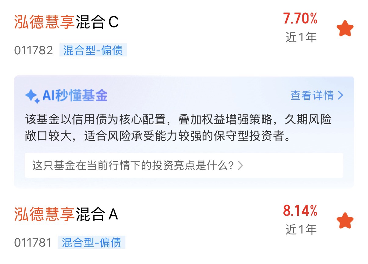 说到“固收+”产品的实际表现,我最近就特别关注到一只做得相当不错的基金——泓德慧享混合(A类:011781,C类:011782)。这只由泓德基金推出的偏债混合型基金,正是采用了“固收+”策略的典范。它以稳健的利率债和高信用等级的信用债构建坚实的“底仓”,筑牢安全垫;同时,基金经理会灵活地投资于可转债和股票,用来增强整个基金的收益潜力。关键在于,这只基金在严格的风险管理和积极的收益追求之间,找到了一个被市场认可的优化平衡点。