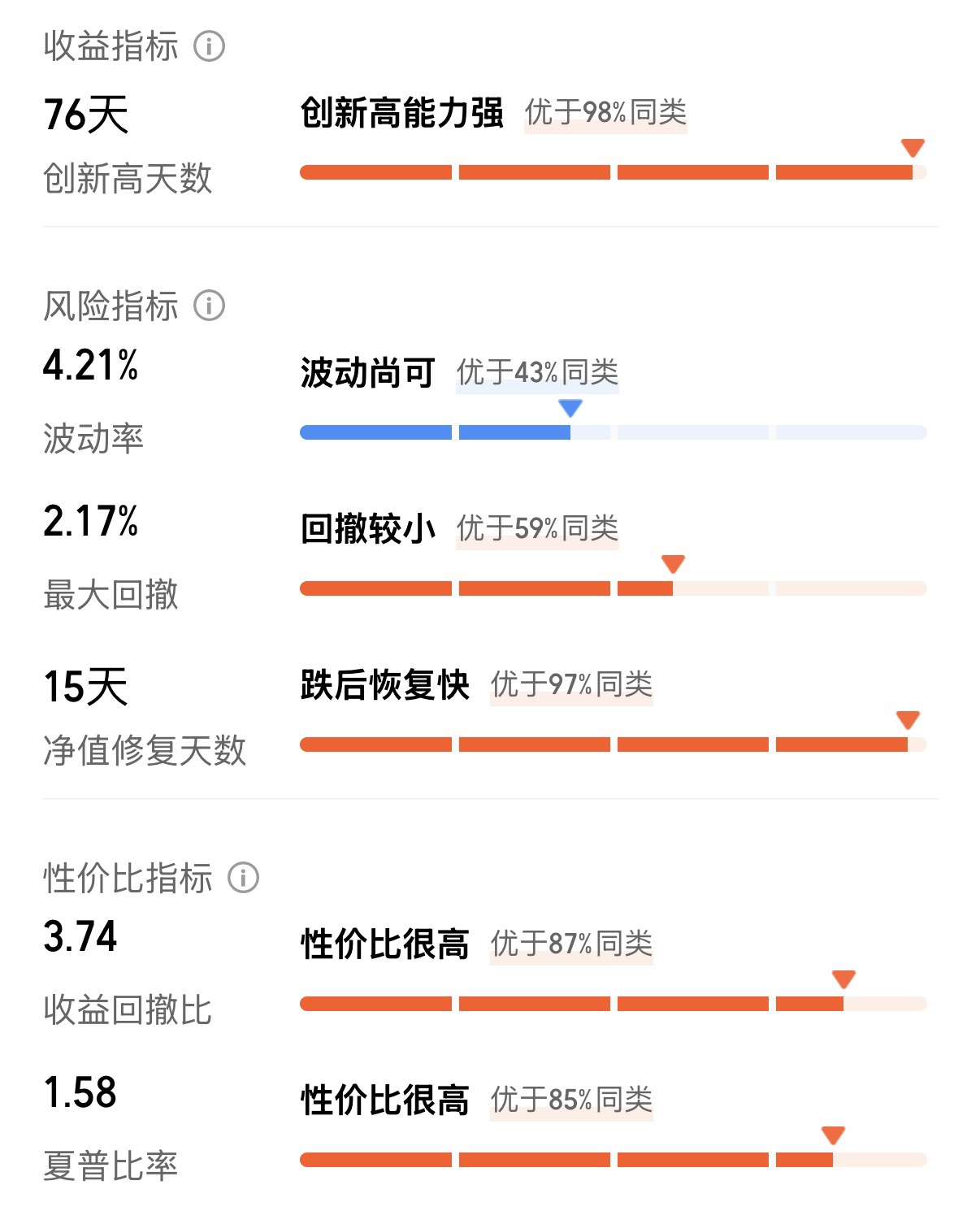 第四,光会赚钱还不够,跌的时候扛不扛得住?——回撤控制是关键。投资这事儿,就算基金经理再牛,如果基金净值波动太大、回撤太深,咱们普通投资者持有起来也会心惊胆战,很难真正享受到长期收益的“甜头”。在回撤控制方面,在姚学康、赵端端两位经理的共同管理下,泓德慧享混合基金在这一块就做得相当不错。近一年的最大回撤仅为2.17%,还不到3%的回撤幅度,基本上可以忽略不计了。毕竟市场上一些7-10年的利率债基金回撤起来,3-4%的回撤幅度是非常普遍的情况。而泓德慧享混合基金还是在配置权益资产的前提下,仍旧把净值回撤控制在了2.17%!就冲这一点,我都要为两位经理点个赞!