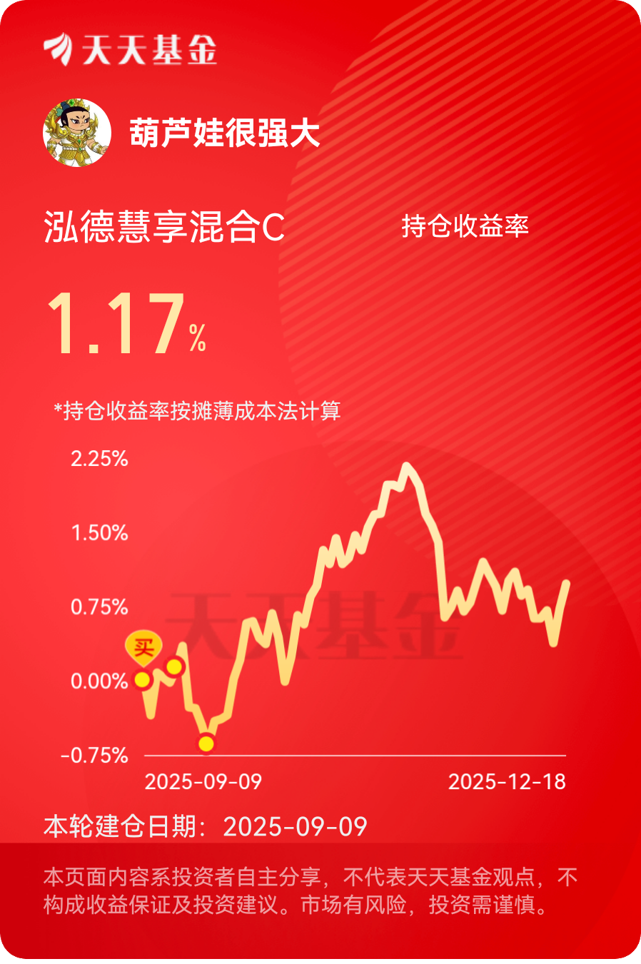 我持有了泓德慧享混合C(011782),我相信它在未来的表现一定会大放异彩的。@泓德基金