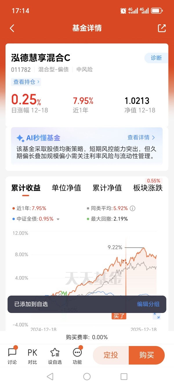 #念念不忘,可有“慧享”# 固收产品的特点,用一句话概括,就是稳健中带有爆发性,在市场上的很多固收类基金产品里面,我拥抱了泓德慧享混合C(011782),它是我心目中的金娃娃: