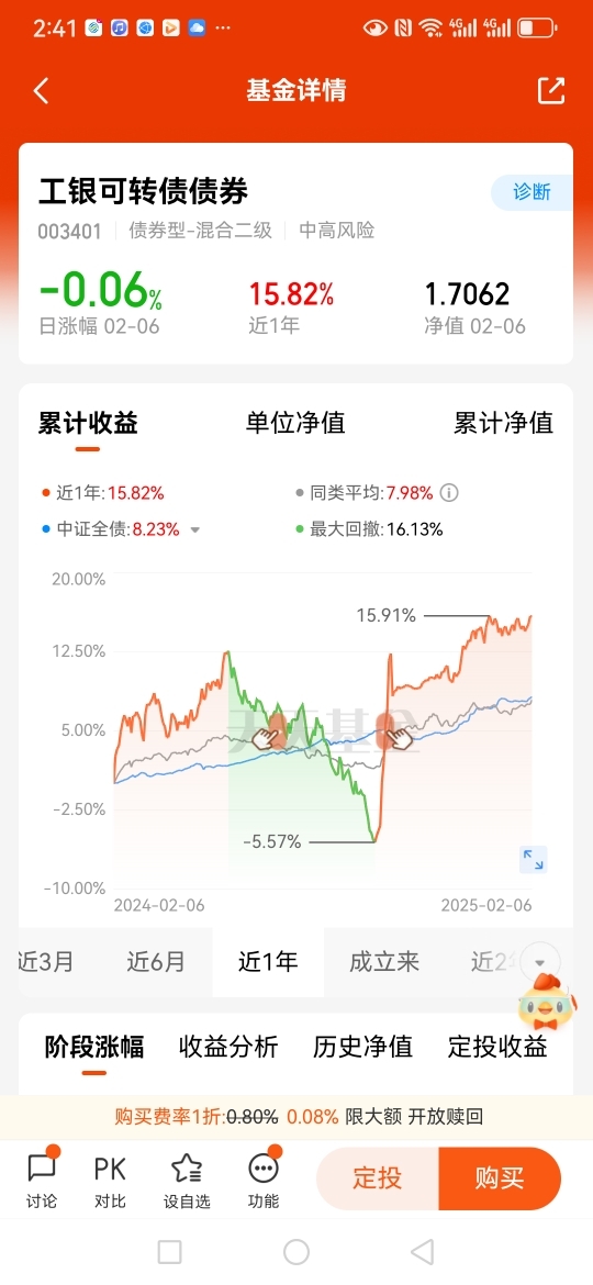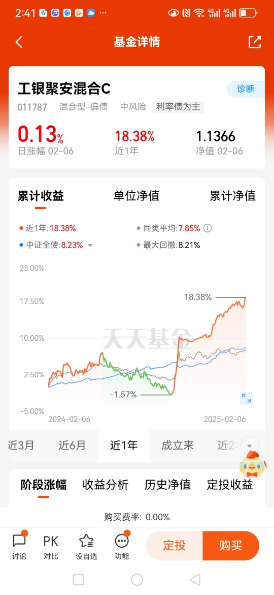 工银家有一个符合这个特点且有历史表现作为参考的产品﹣工银聚安混合,近一年收益率达到两成。与收益比,其控制回撤抓反弹的机会是不错的,总体呈现债市重要回调点跌相对较少,但市场机会回暖时涨更多的情况。当然除了经理的择时,也可能与股债有对冲效果有关。