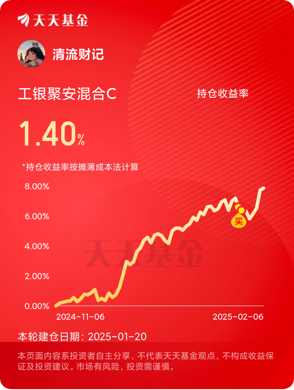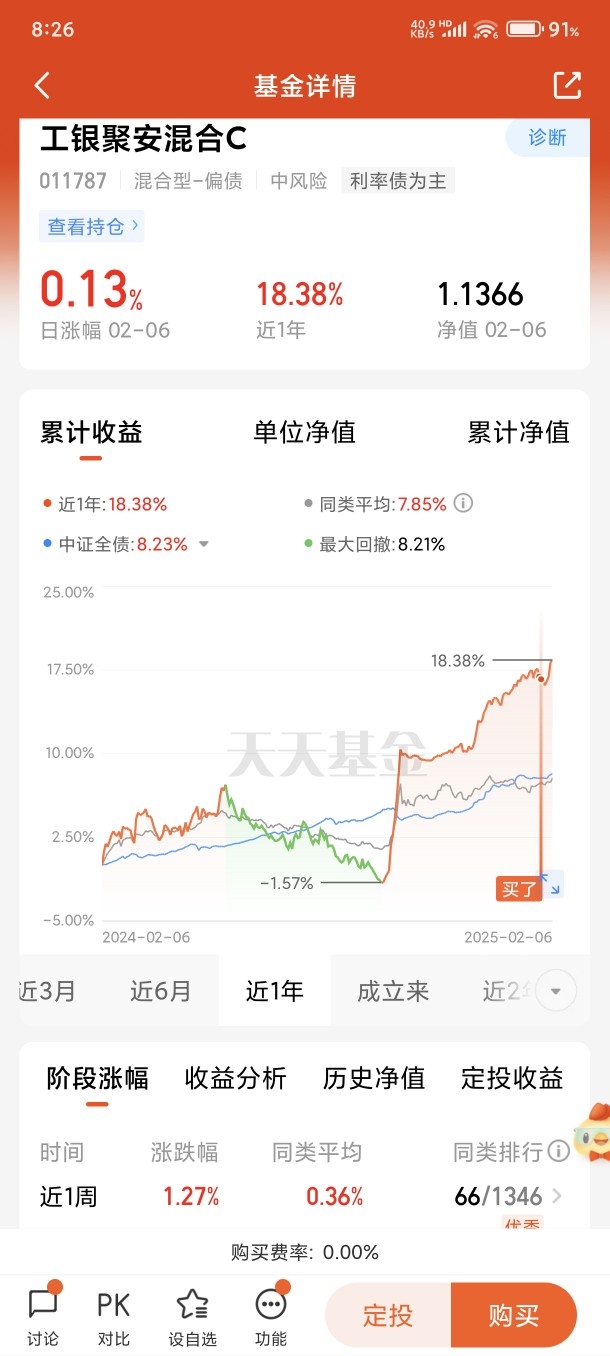 值得一提的是工银聚安混合C(011787)是一只偏债混合基金,也就是所谓的“固收+”基金,“固收”是收益稳定的的债券、同业存单等资产。“+”是风险、收益相对更高的股票投资、打新、可转债、股指期货、国债期货等权益投资产品。