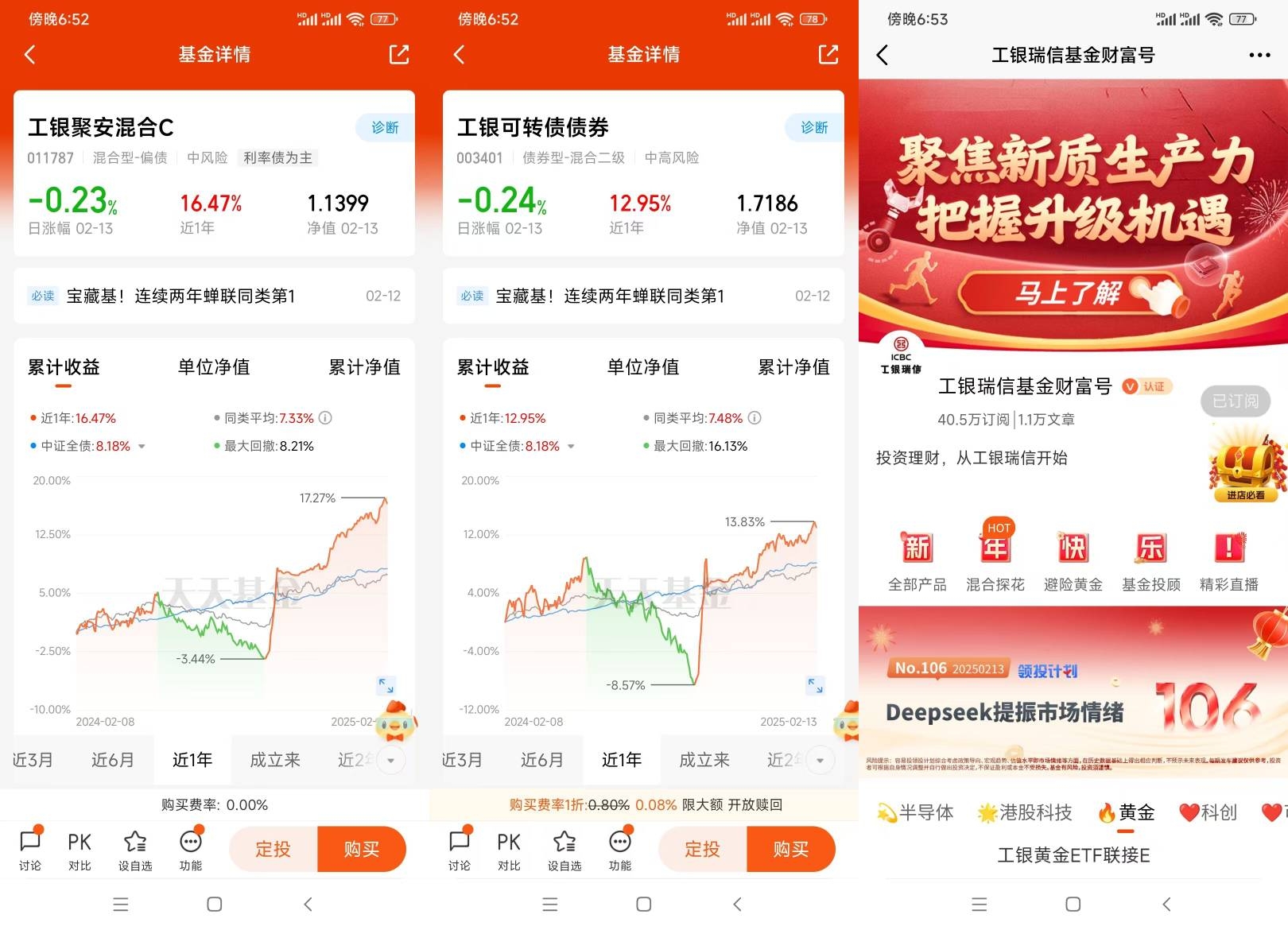 从宏观经济环境来看,当前经济形势呈现出一定的复杂性和不确定性。经济增长的趋势、通货膨胀水平、利率变动等因素都会对投资产生重要影响。在经济增长强劲时,企业盈利通常较好,股票市场可能表现出色;而高通货膨胀可能侵蚀投资回报,使得固定收益类投资吸引力下降;利率的上升则会增加借贷成本,对企业盈利和股票价格产生压力。然而,正是在这样的背景下,工银聚安混合 C(011787)的资产配置策略显得尤为重要。该基金采用“自上而下”的资产配置方法,投资研究团队会根据对宏观经济运行态势、政策变化、市场运行状况等因素的深入研究,判断证券市场的发展趋势,并结合行业状况、公司价值性和成长性分析,综合评价各类资产的风险收益水平,执行动态调整策略。这种灵活的资产配置策略使得基金能够在市场上涨阶段增加权益类资产配置比例,以获取更高的收益;在市场下行周期则增加非权益类资产配置比例,降低基金的波动风险,从而有效提高不同市场状况下基金资产的整体收益水平。