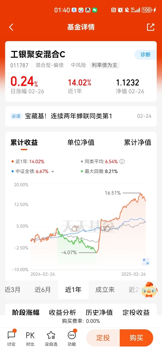 打卡第14天$工银聚安混合C$作为一款偏债固收+产品,在2024年已展现出出色的