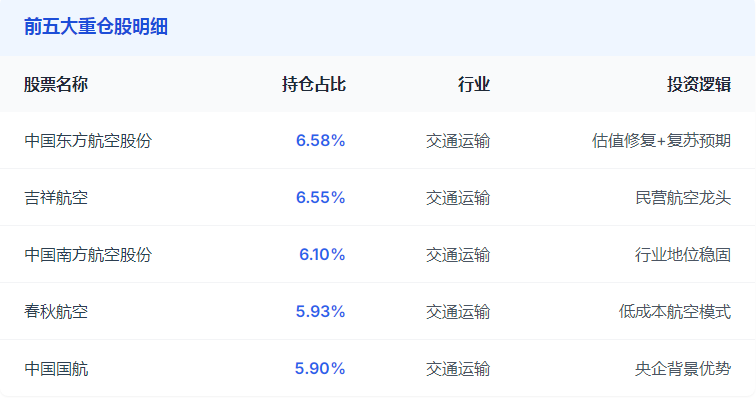 从行业基本面来看,交通运输行业作为国民经济的血脉,与宏观经济景气度高度相关。 当前我国经济正处于复苏通道,出行需求的恢复将直接利好航空运输业。 同时,油价的相对稳定也为航空公司成本控制提供了有利条件。 基金经理正是基于对这些基本面因素的深度分析,才做出了集中配置的决定。