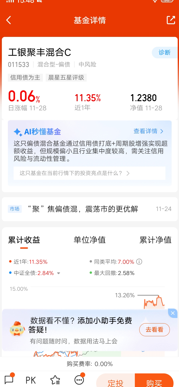 打卡第一天,$工银聚安混合C$ 以航空股为核心配置,通过高弹性行业爆露获取超额收益,但行业集中度与规模因素需重点关注。近一年上涨26.59%,今年来已上涨20.19%。基金经理黄诗原,该基金任期2年又27天,任职回报48.98%。在他的管理下,该基金业绩出色。@工银瑞信基金