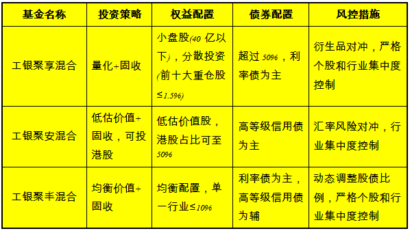 工银瑞信”聚”系列三只偏债混合基金各具特色,分别聚焦不同的投资策略方向,满足不同投资者的需求: