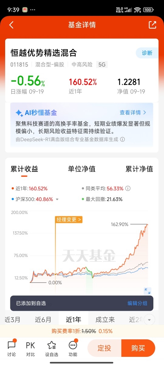 想起2019年半导体行情,我自己瞎买杂毛股亏了20%;2021年追新能源主动基,却碰上基金经理偷偷换仓AI。这次选恒越优势精选,终于踩对了节奏:
