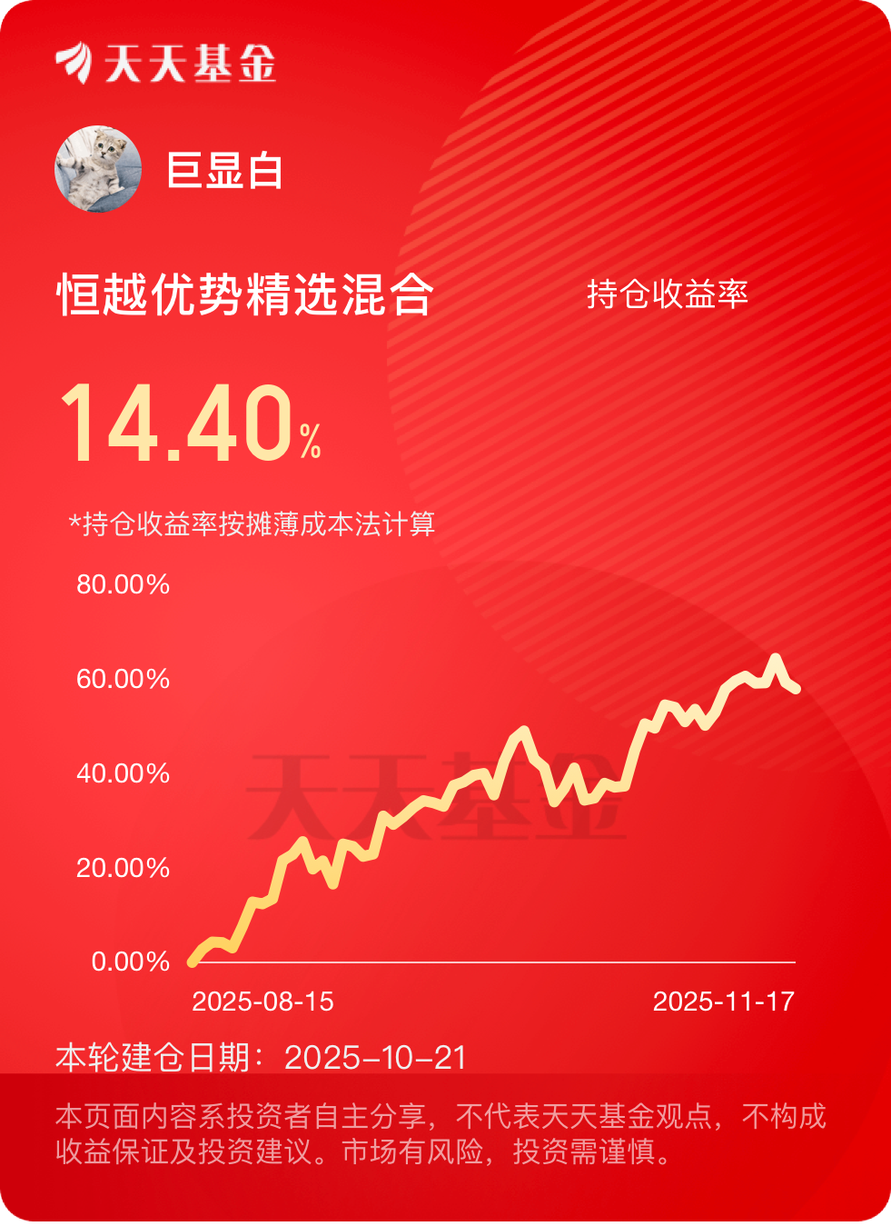 不慌不忙陪基金成长,恒越优势14.40%涨幅在手,长期持有不负期待!#晒收益#