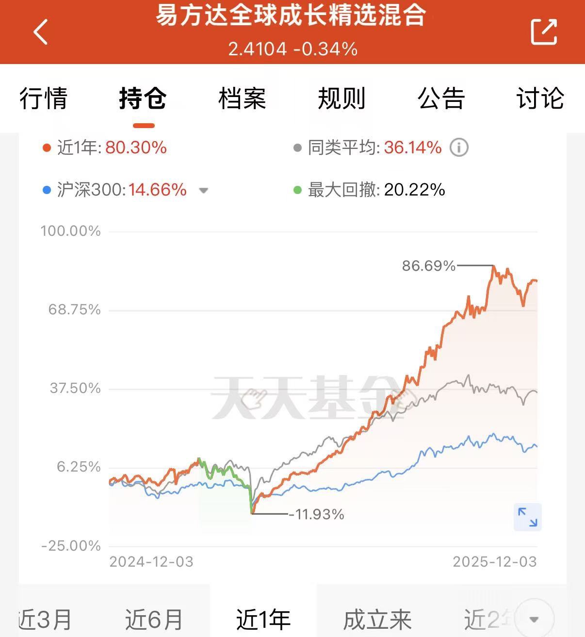 最近市场震荡得不行,我算是想通了,不能把所有希望都寄托在一个市场上,得分散着来。最近发现了一只叫易方达全球成长精选混合C的基金,是投全球科技股的,A股、港股、美股都能投,感觉挺全面的。这样哪个市场有行情就能抓住,也能灵活地避开一些政治上的风险。基金经理也挺有水平的,会看时机调仓,一季度重点搞港股,抓住了估值修复,二季度又跑去美股布局AI算力。最近美股大跌,人家调仓也及时,回撤控制得还不错。虽然科技板块现在还有点飘,但长期机会肯定没跑,国内外都有得玩。现在正好回调,我觉得是低吸的好机会,可以考虑上车。