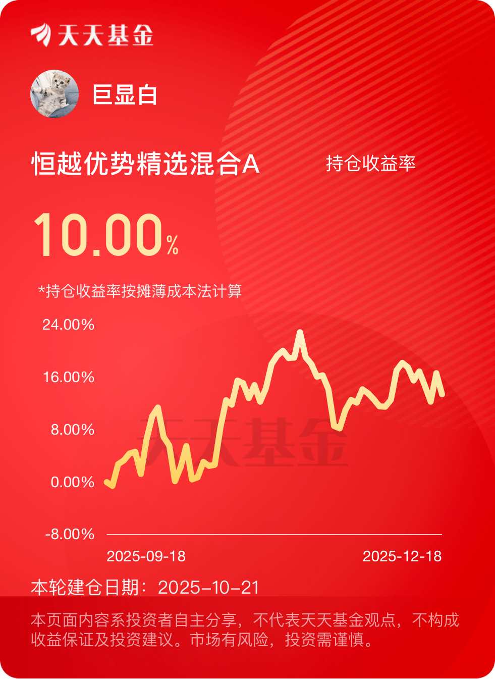 短期波动是成长路上的小插曲,$恒越优势精选混合A$靠动态调仓把握AI主线,长期收