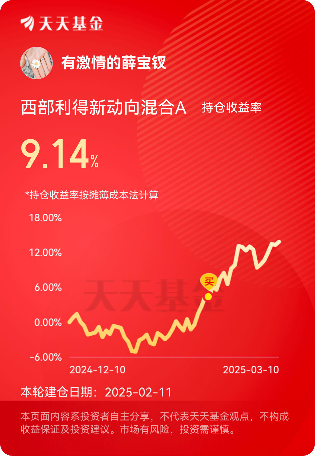 感觉科技方向,人工智能方向今年问题不大,高位稍微歇一下也正常,但也是怕亏钱啊,做了个防守的切换,入了$西部利得新动向混合A$ #晒收益#