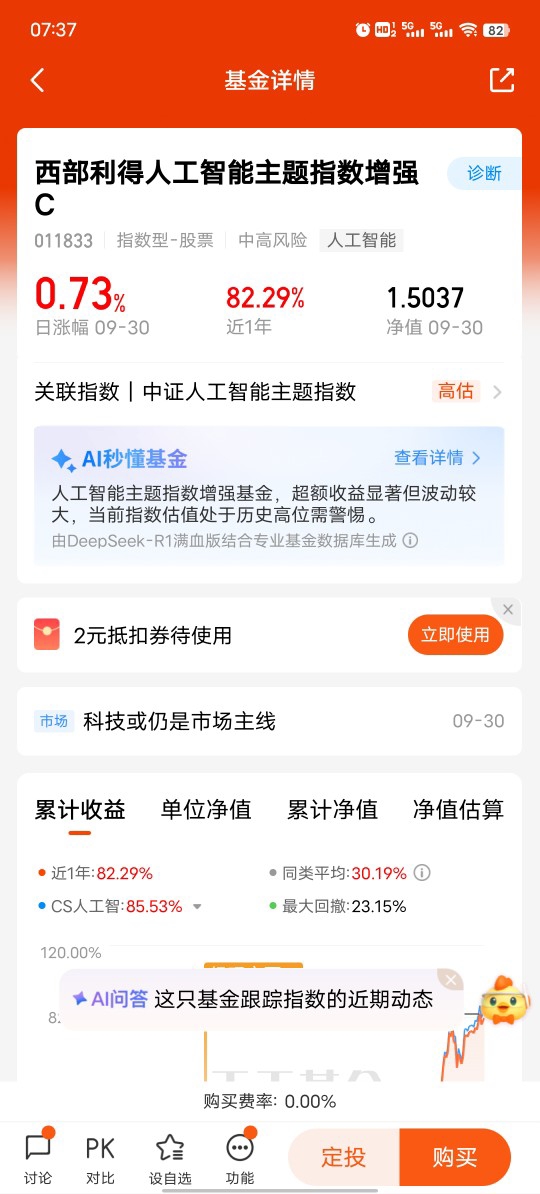 对于年底前的投资,今年科技行业相关的成长股涨幅居前,随着第四次工业革命的到来,我认为是AI+机器人的时代,所以重点关注这两个方向,享受时代给我们的福利。$西部利得人工智能主题指数增强C$ @西部利得基金