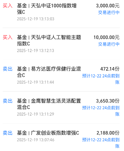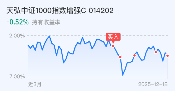天弘中证1000指数增强C聚焦中小盘成长股,行业上覆盖创新药、基础化工、电子半导体、军工、电力设备及新能源等成长型企业,弹性更大,预期收益也更高,天弘这只又有增强策略加持,长期能跑赢指数涨幅,我继续定投。