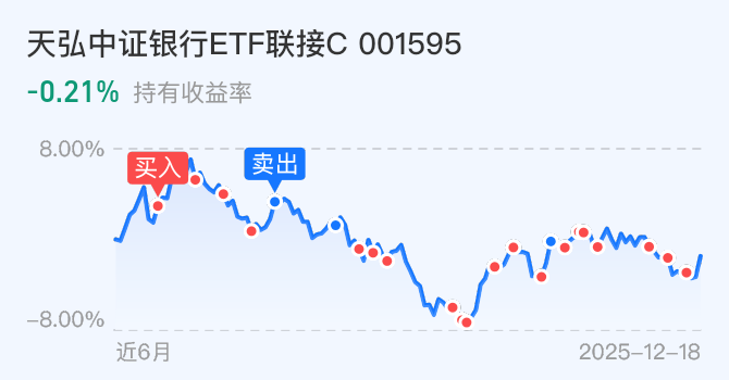 $天弘中证银行ETF联接C$跟踪的中证银行指数这会看跌0.4%左右,昨天逆市护盘,今天也抗跌,我持仓不动。