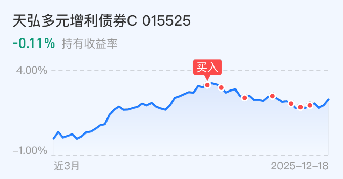 我加仓$天弘多元增利债券C(OTCFUND|015525)$10000元!继续讨论区推荐流领包发车,省到就是赚到,多元增利和普通的固收+策略不太一样,它权益部分都是偏高股息策略,以银行、红利为主,防御属性比较强,是适合长期持仓的品种,我做一个资产底仓配置,近6个月5.19%的业绩还是很香的。