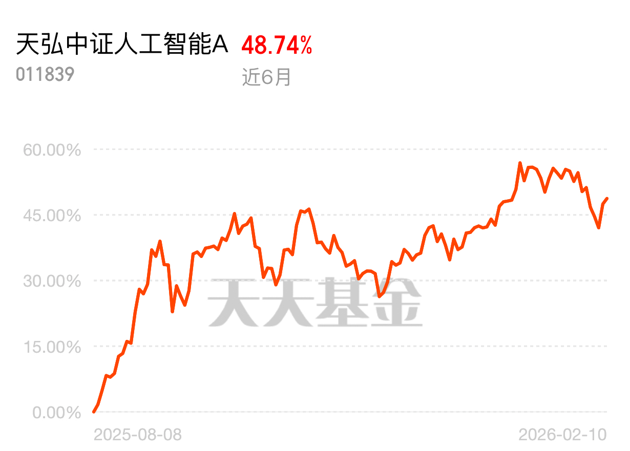 $天弘中证人工智能A$ 近半年涨幅还可以