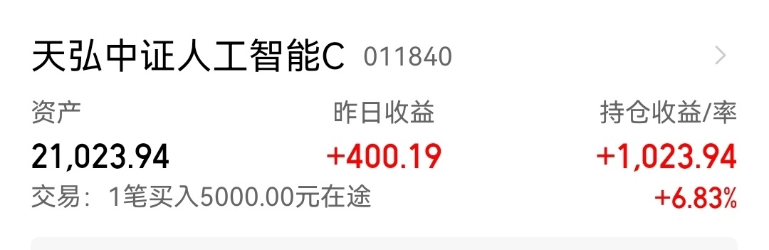 1、$天弘中证人工智能C(OTCFUND|011840)$ ,买入5000元