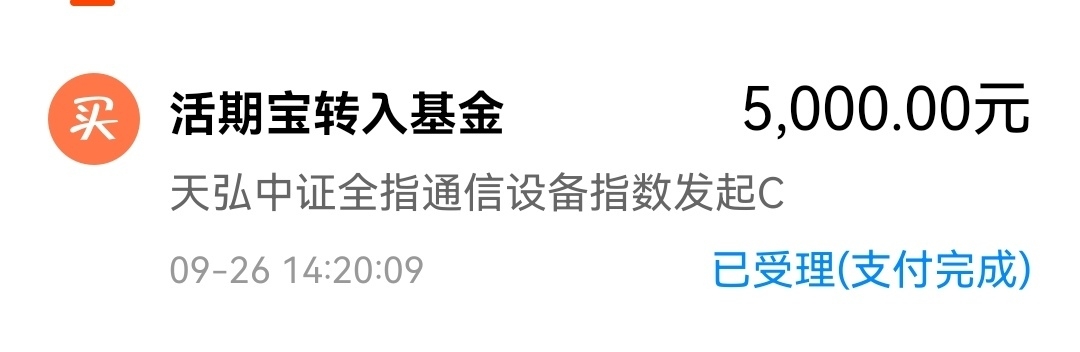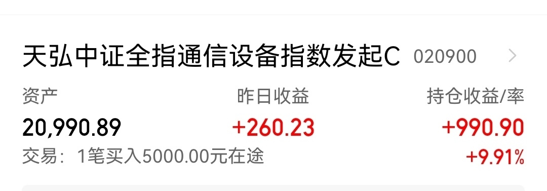 2、$天弘中证全指通信设备指数发起C(OTCFUND|020900)$ ,买入5000元