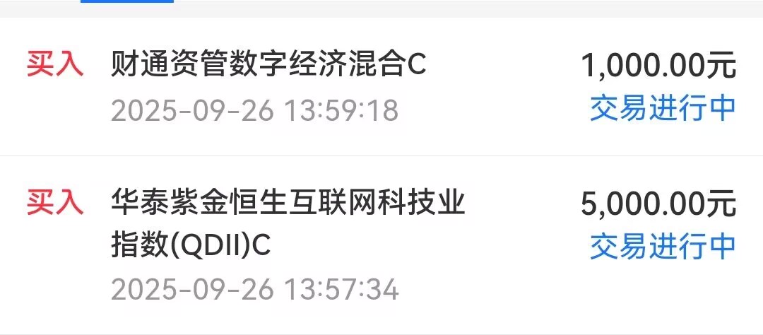 4、$华泰紫金恒生互联网科技业指数型发起基金(QDII)C(OTCFUND|018524)$ ,买入5000元