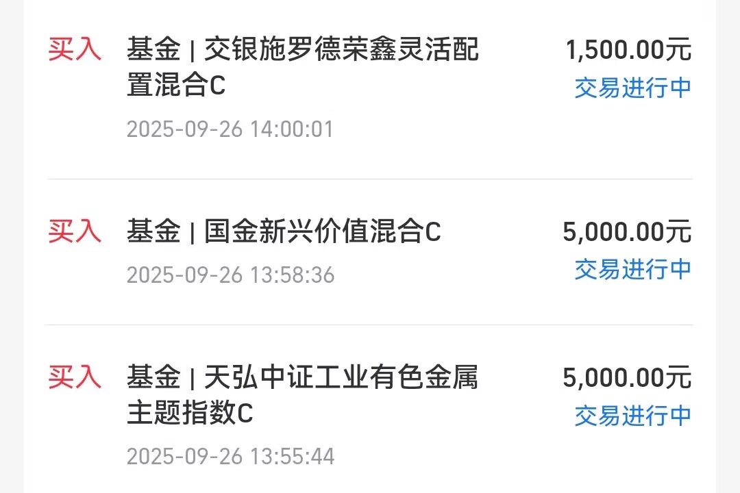 我今天加仓了人工智能、通信设备、交银施罗德荣鑫、恒生互联网科技、财通资管数字经济、国金新兴价值、工业有色金属指数,其它基金继续持有待涨。