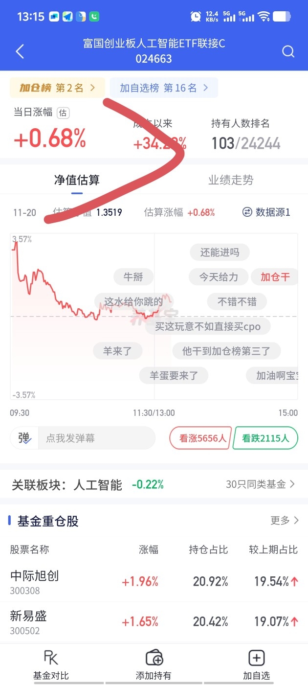 选择比努力更重要,这个$富国创业板人工智能ETF联接C$ 昨天收红0.61%今天继续冲起来估值红0.68%