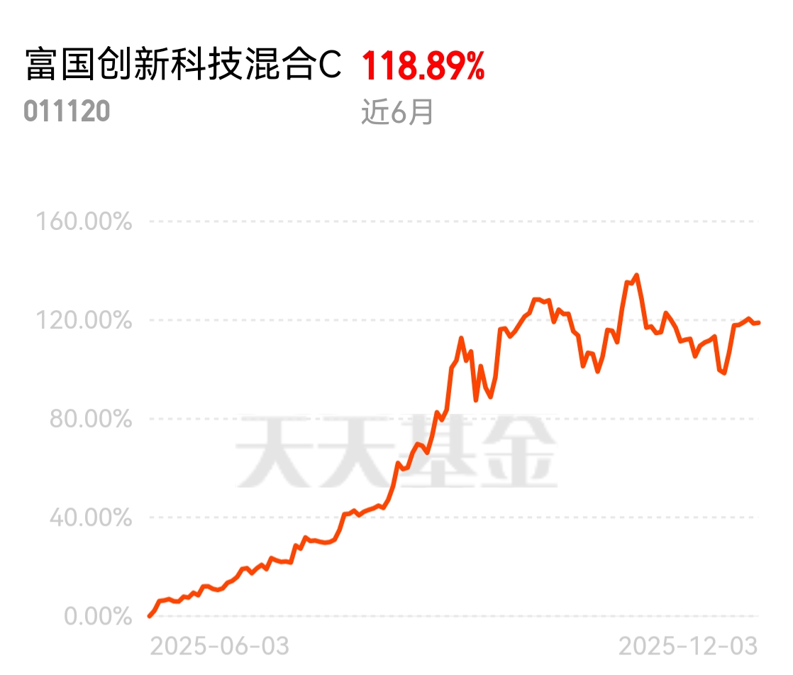 这阵子天弘人工智能C一直没起色,倒是继续持有富国创新科技C它近6个月涨了119%