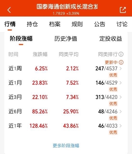 国泰海通创新成长混合发起C,基金经理陈思靖管理。近1月23.83%、近1年128