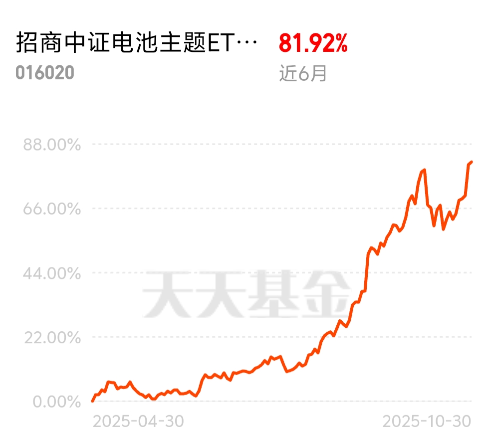 最近电池板块的回调幅度特别有限,稍微跌一点就有人买,强势特征很突出。招商中证电池主题ETF联接C近6个月有81.92%的业绩,抗跌又能涨。
