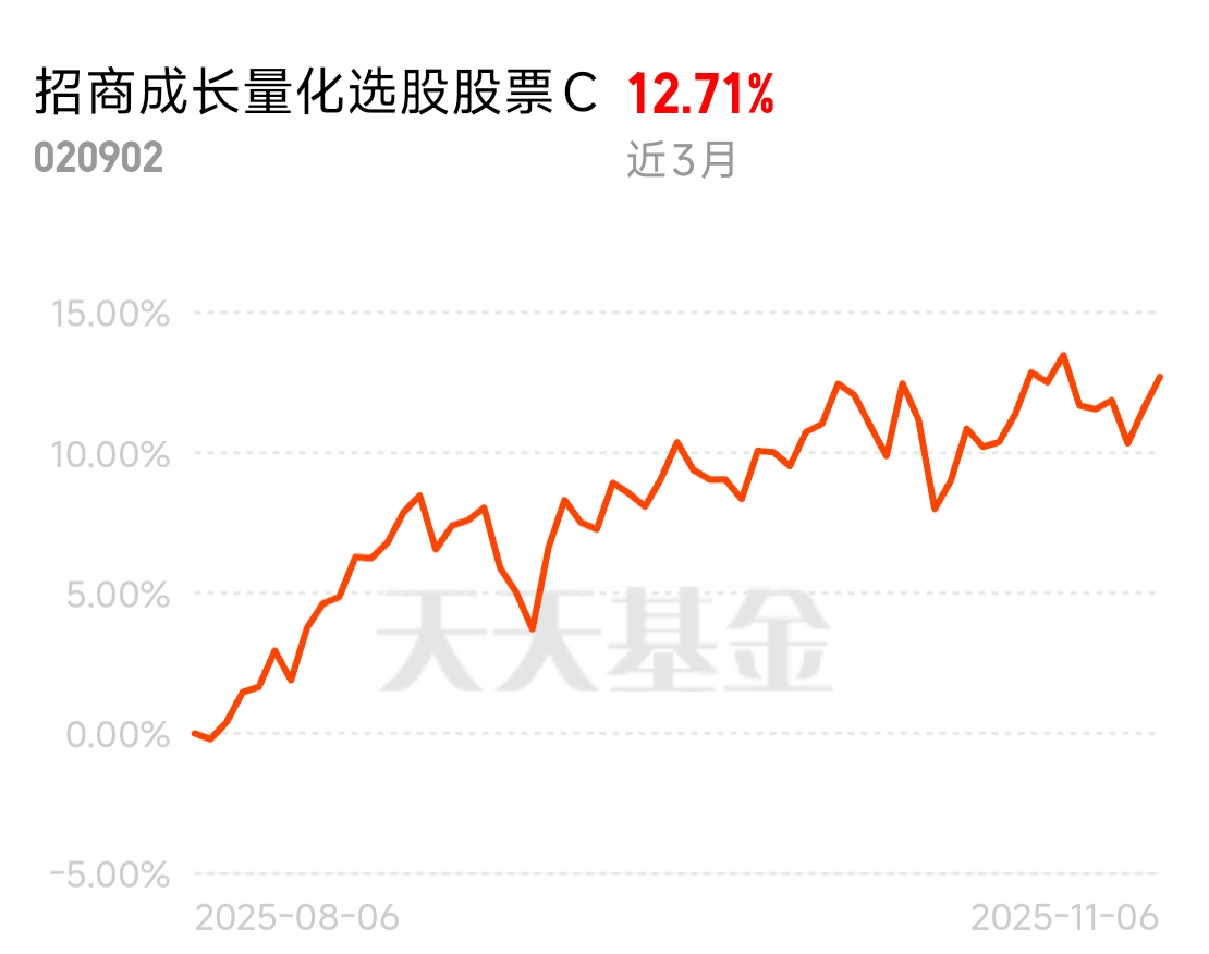 最近大家选基金都看重实战业绩,招商成长量化选股股票C近3个月涨12.71%,近一