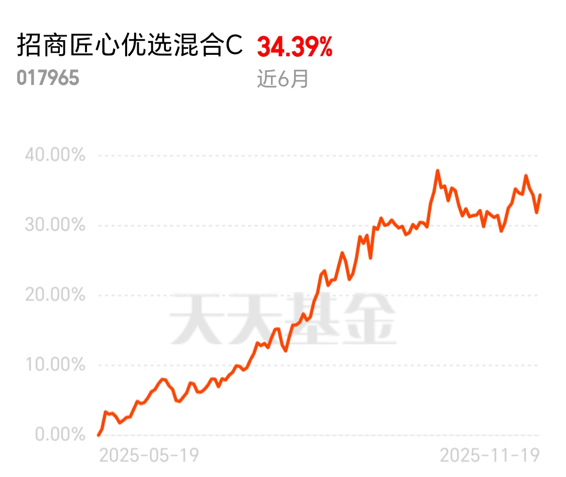 近期基金市场行情波动加大,不少投资者心态浮躁,频繁买卖反而得不偿失。其实选对产品长期持有就好,招商匠心优选混合C近6个月收益34.39%,用实力让投资更安心。