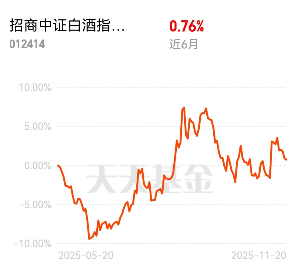 白酒行业底部确认后慢慢回暖,三季度酒企出清加速,二阶导拐点明确,明年二三季度就能看到明显好转。招商中证白酒指数C近6个月收益0.76%,现在到春节前后行业催化不断,定投入场不用怕踏空,慢慢积累收益更靠谱。