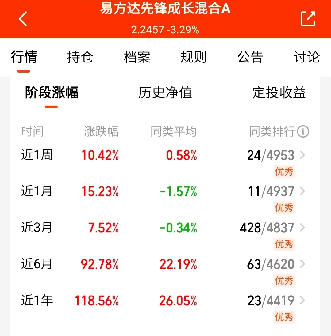 昨天股市行情回落调整,今天就反弹了,科技板块也继续反弹,CPO继续上涨,$易方达先锋成长混合A(OTCFUND|011891)$的基金经理之前就提前布局了这个赛道,我加仓的就是这只,基金经理前瞻能力强,成立来10年里紧密把控成长机会,长期走势强、在成长行情下爆发力强,比同类都优秀呢我觉得可以拿稳,安心看长期呢。