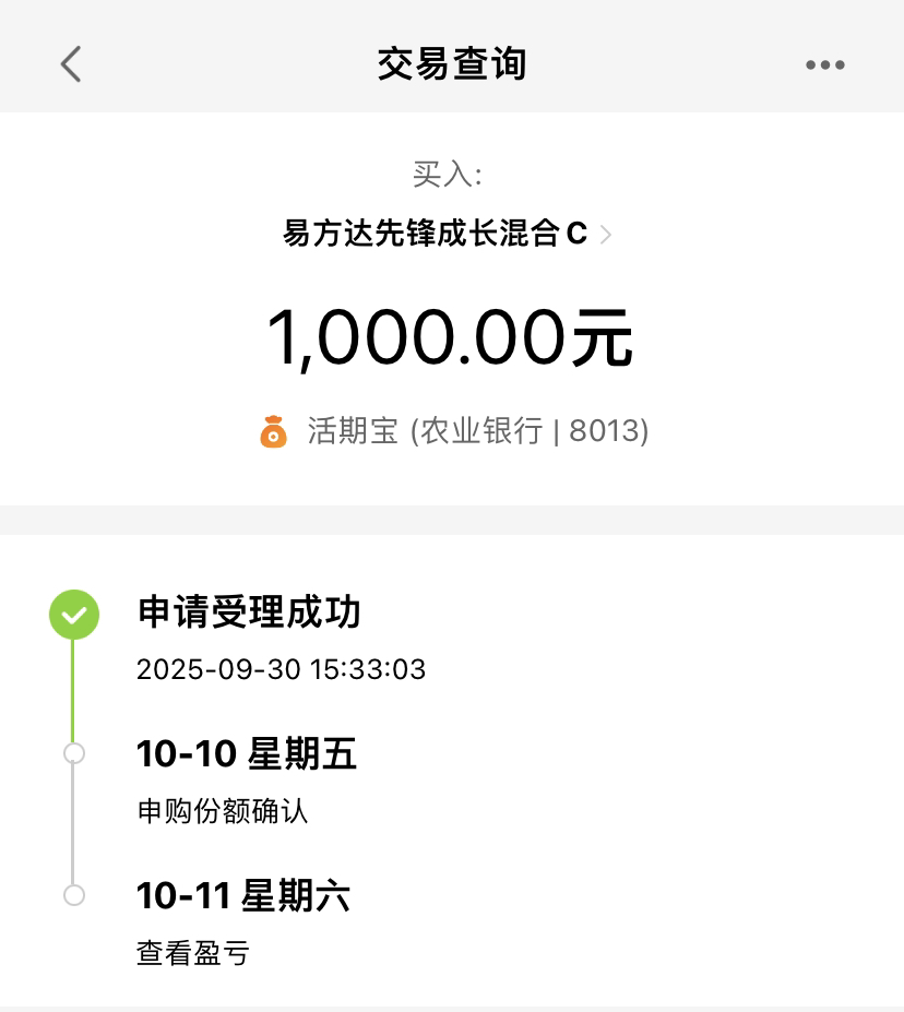 终于放假啦!这段时间不用再操心市场涨跌、算盈亏,好好回归生活就行。我还是配置科技,$易方达先锋成长混合C(OTCFUND|011892)$成立以来涨幅超400%,成长行情里爆发力足。基金经理也靠谱,代表作瑞享混合成立至今业绩+381%,长期表现好、调仓坚定效果佳,信他的配置,安心拿长期准没错!#DeepSeek、寒武纪同步发布引关注#