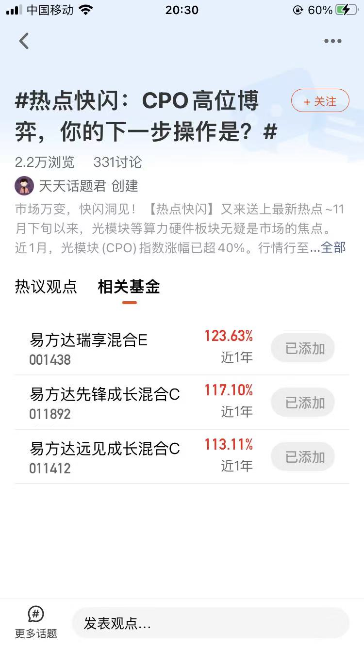 总之,在CPO高位博弈的当下,我不会跟风获利了结,也不会急着加仓。就抱着手里的筹码,搭配着稳健的债券基金,慢慢等行业逻辑兑现。对普通投资者来说,比起在短期波动里追涨杀跌,找对有长期支撑的赛道,保持好心态坚定持有,反而更容易赚到钱。@易方达基金