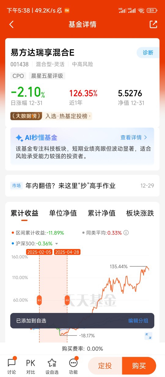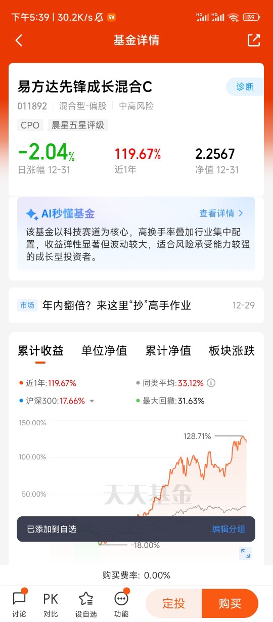 我之前也犯过追涨杀跌的错,去年看到某个热点板块涨得好就跟风买,结果跌的时候慌了神赶紧卖,最后亏了不少。后来才明白,投资要看底层逻辑,CPO不是炒作出来的概念,而是真能解决行业痛点的技术革命。易方达先锋成长混合C选的都是有真技术、有业绩支撑的公司,不是那些只蹭概念的“空壳股”,这样的基金抗风险能力更强,长期拿着更放心。