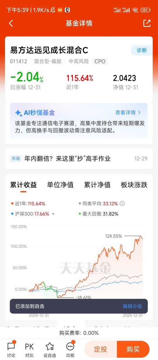 总之,我坚定持有易方达先锋成长混合C,是看好CPO技术的长期潜力,也信任基金的持仓布局。短期波动都是成长路上的小插曲,只要行业逻辑没变,优质基金迟早会带来回报,没必要在高位博弈中乱了阵脚。